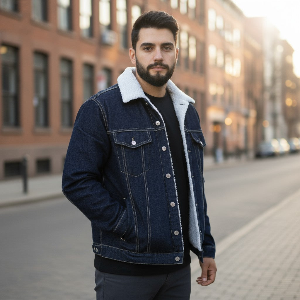 Chamarra de Mezclilla Rígida con Borrega para Hombre John SIlver
