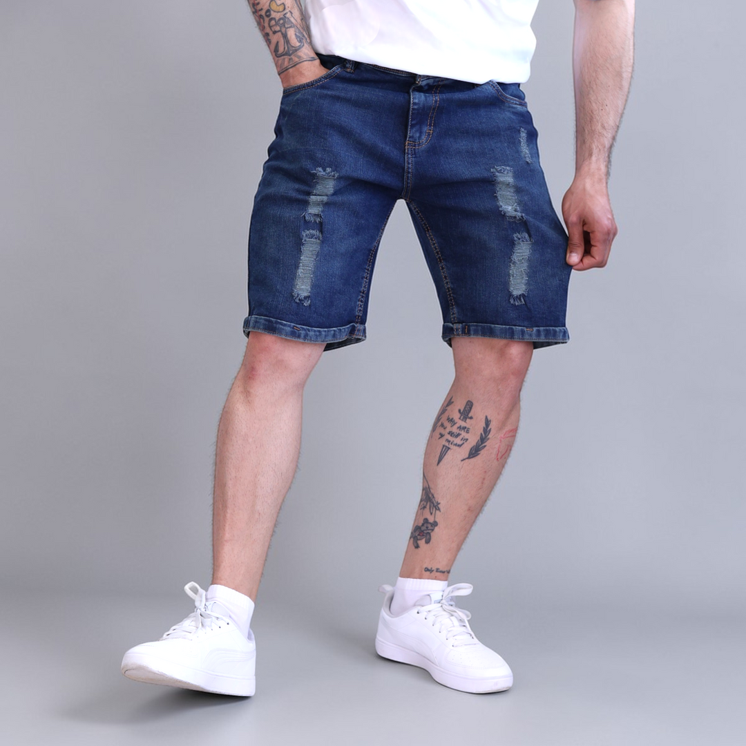 Bermuda Short De Mezclilla Stretch con Demolición John Silver